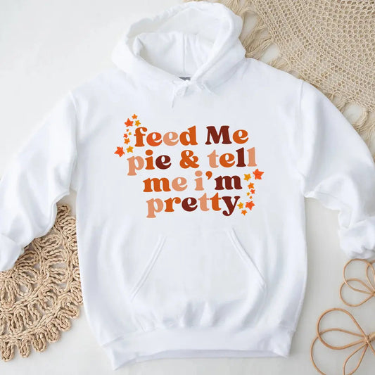 Feed Me Pie And Tell Me I'm Pretty Hoodie – The Only Thanksgiving Hoodie That Gets You