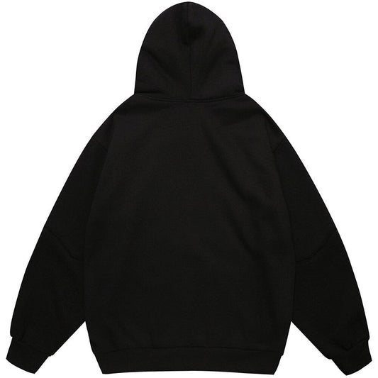 Punk Rivet Melted Letter Print Oversized Hoodie – Edgy Harajuku Gothic Diablo Streetwear