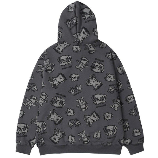 Japanese Cartoon Print Fleece Oversized Hoodie – Harajuku Meets Cozy Comfort