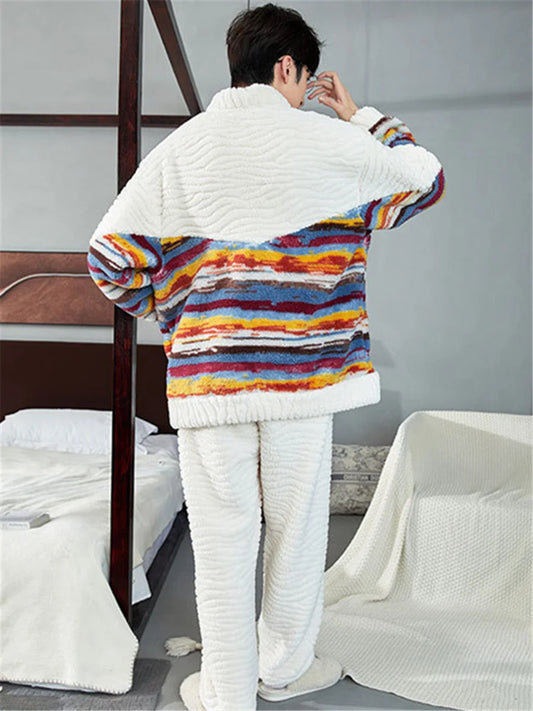 Men's Winter Warm Coral Fleece Loungewear Set – Because Cold Nights Deserve Fuzzy Pants