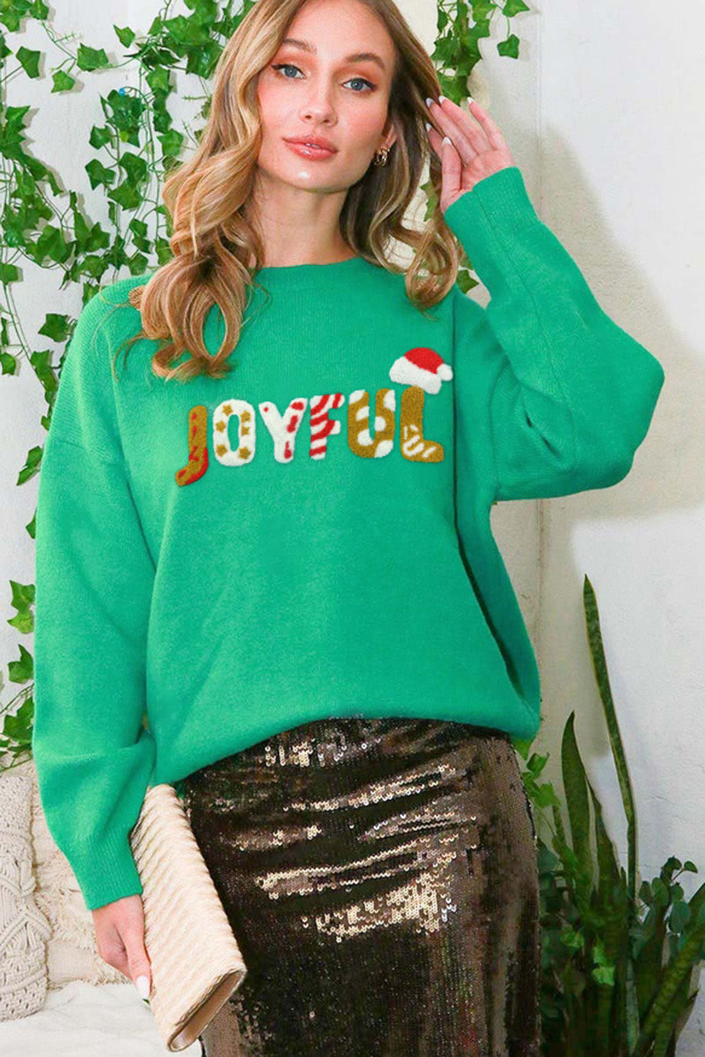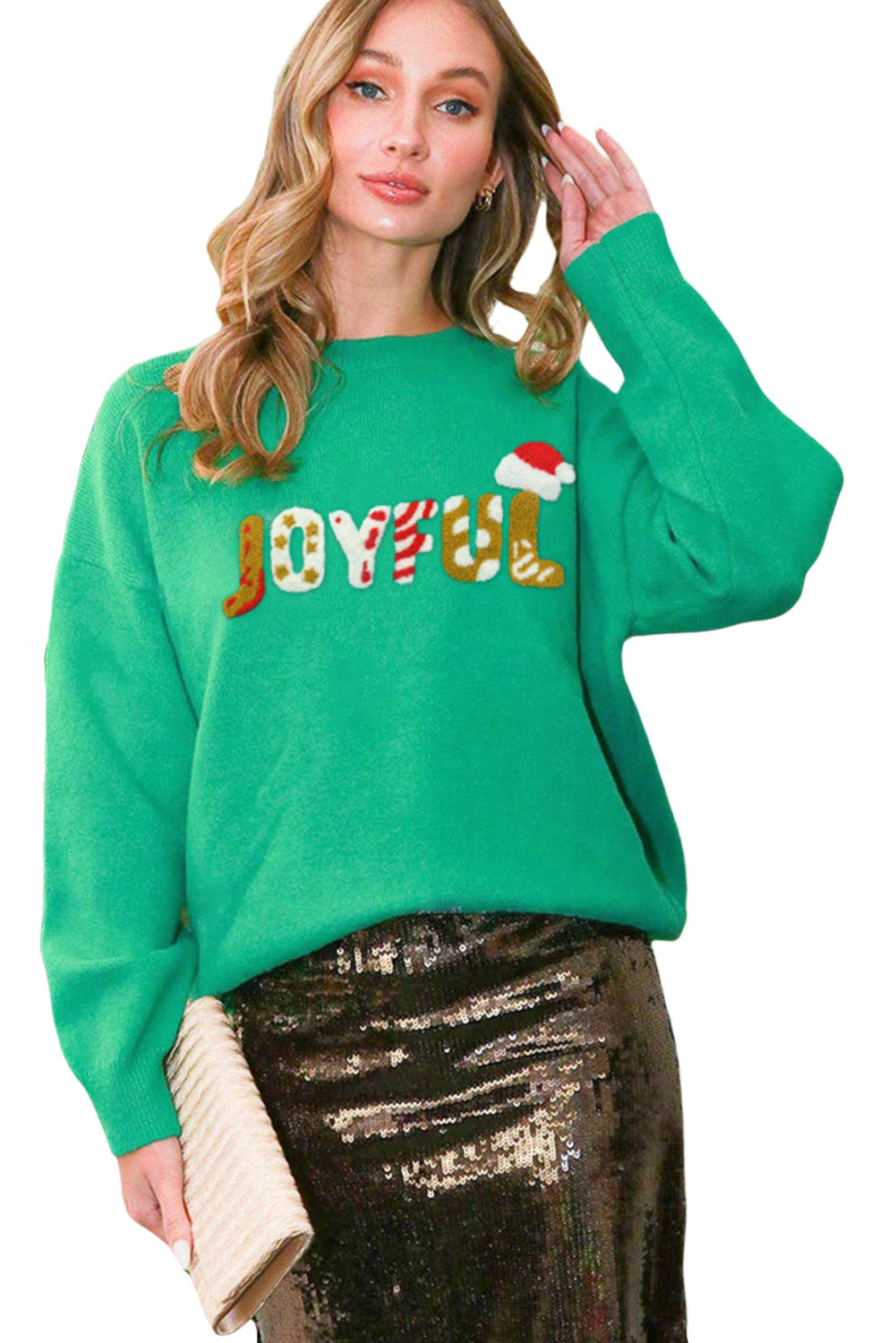 Add sparkle to your holiday wardrobe with the Bright Green Sequined JOYFUL Christmas Sweater! Designed to spread festive cheer, this cozy knitted sweater is perfect for making a statement at holiday parties or family gatherings.
