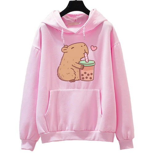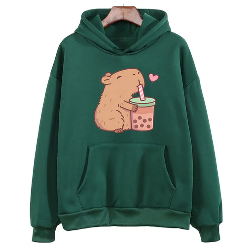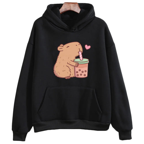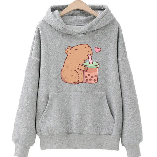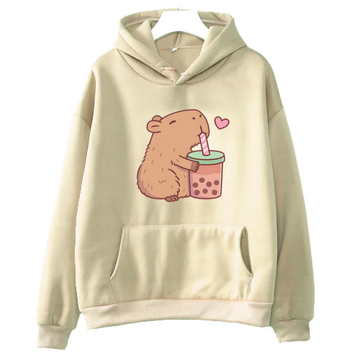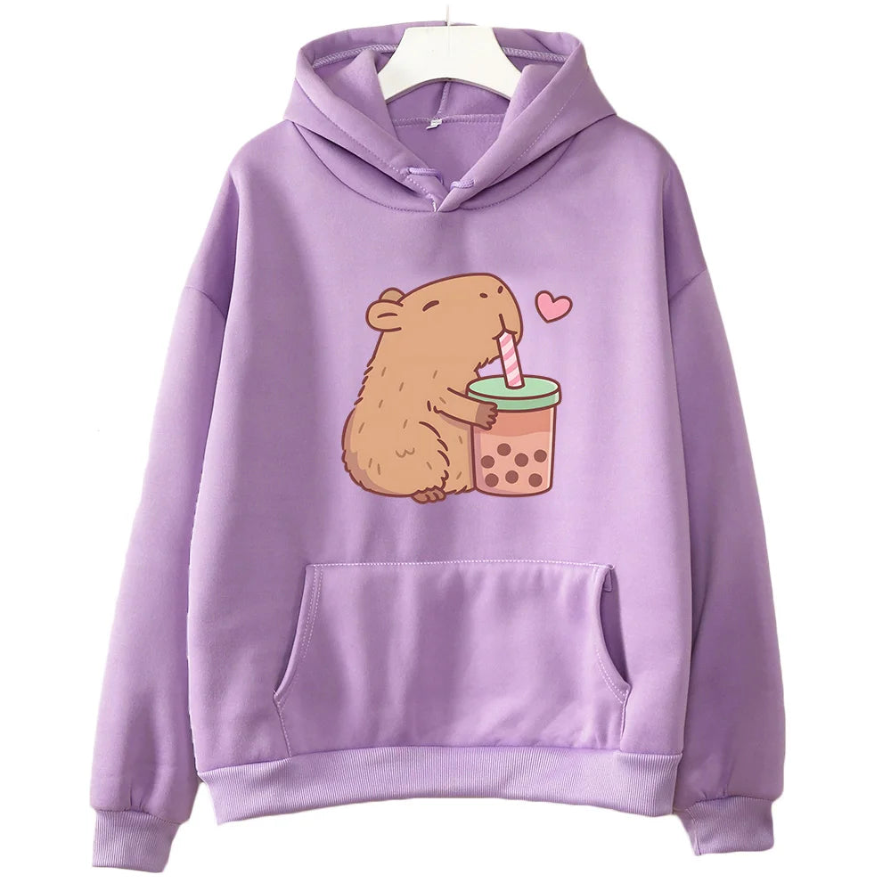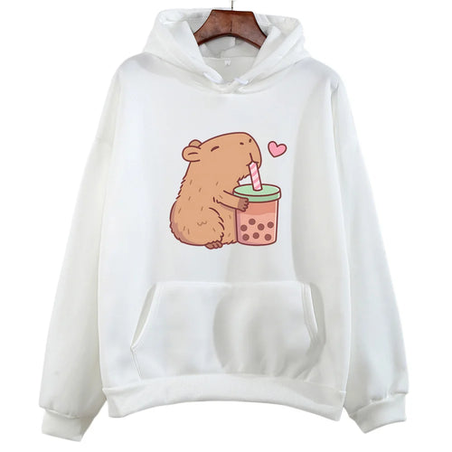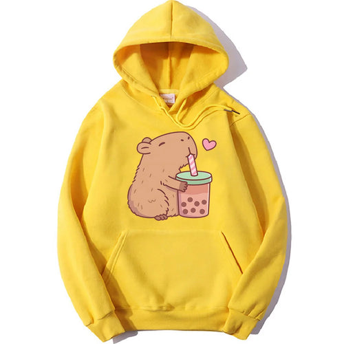 Kawaii Bubble Tea Capybara Hoodie – Cute, Cozy, and Caffeinated!