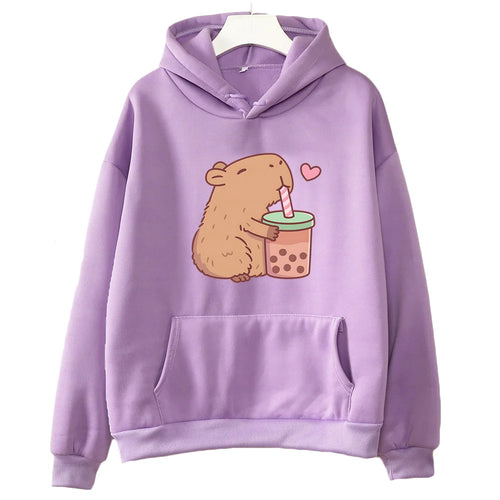 Bring the charm of your favorite chill animal and your love for bubble tea together in one adorable outfit! The Kawaii Bubble Tea Capybara Hoodie is the ultimate statement piece for fans of cozy comfort and quirky, fun fashion.